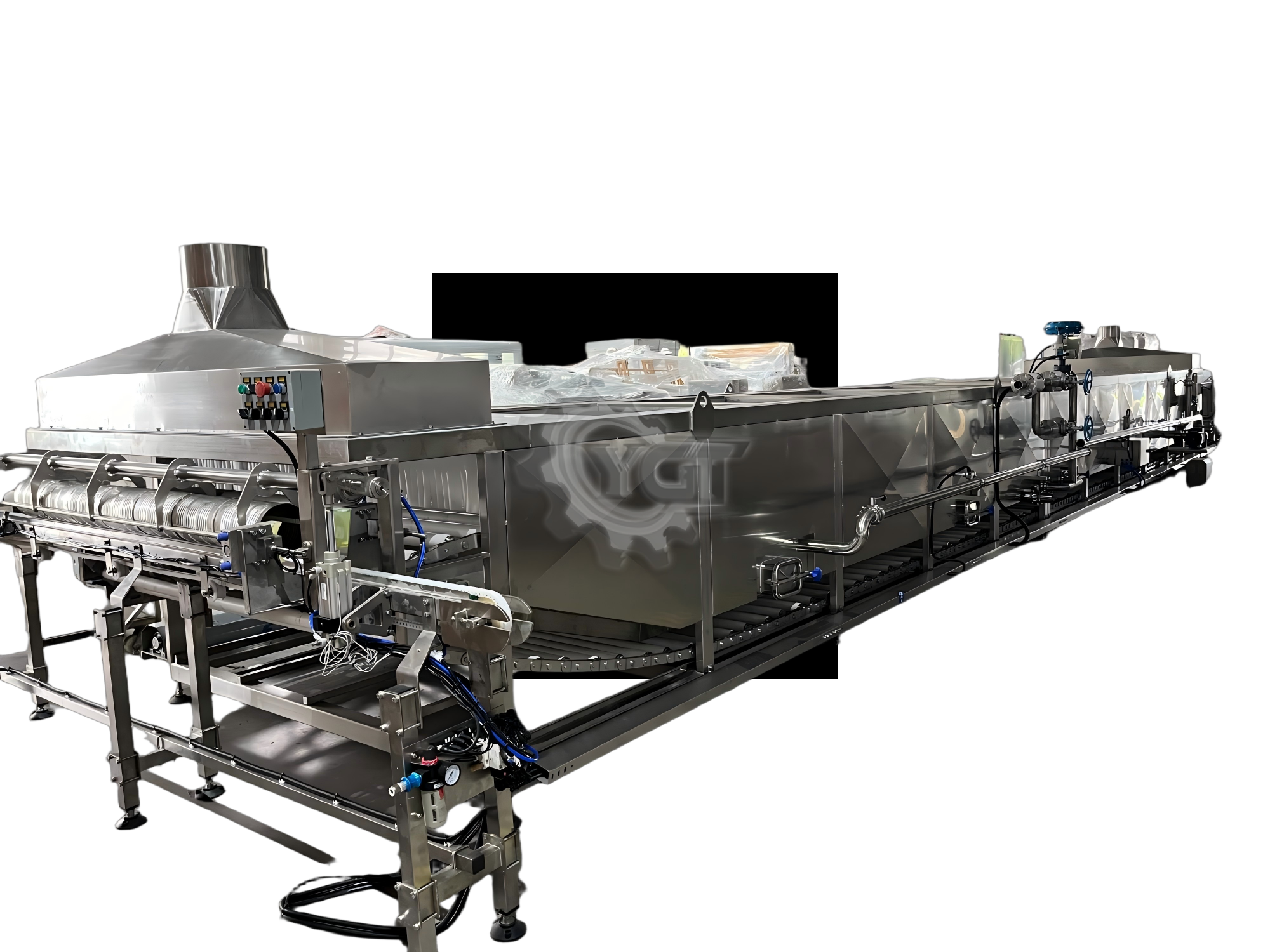 Стерилизатор для водяной ванны представляет собой машину непрерывной пастеризации и стерилизации, предназначенная для упакованной жидкости или полужичных пищевых продуктов. Погружая продукты в нагретую циркулирующую воду, он обеспечивает равномерную термообработку, сохраняет текстуру и питание продукта и гарантирует безопасность пищевых продуктов. Идеально подходит для гибкой упаковки, такой как мешочки, бутылки и подносы.