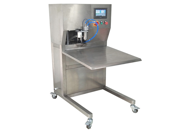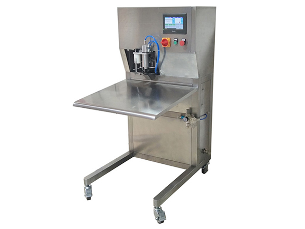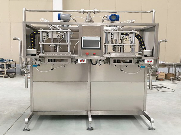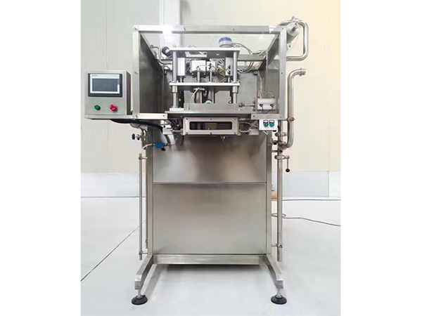 4. После заполнения механизм поднимается и движется вправо, а затем нажимает, чтобы полностью вжать крышку в устье мешка.