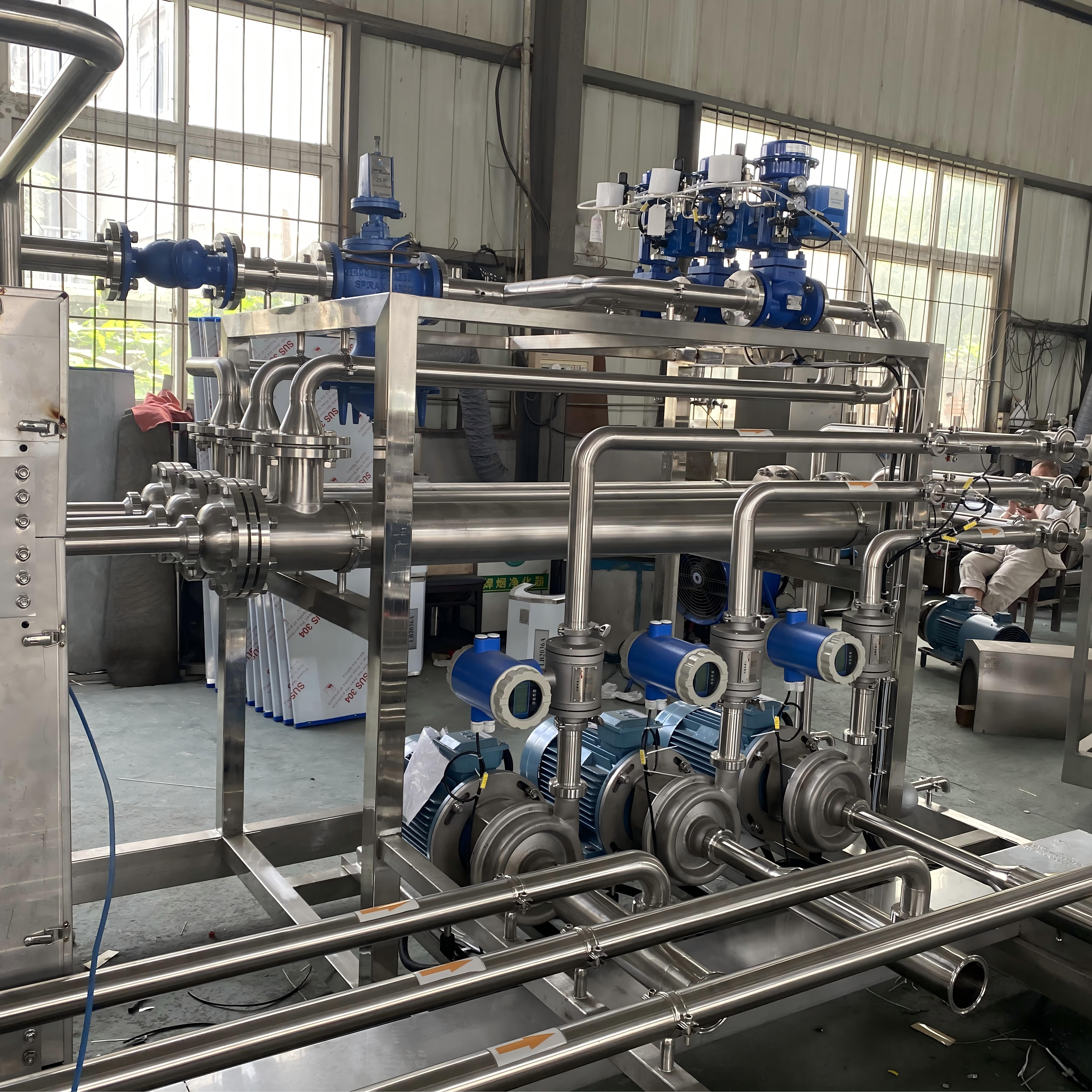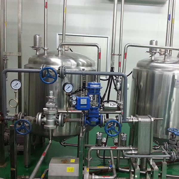Рециркуляция и контроль: Санитарный насос приводит в движение замкнутый контур; ПИД -управление модулирует паровую/электрическую мощность через регулирующие клапаны/ТТР для поддержания температуры.