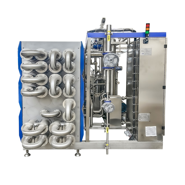 Стерилизатор UHT (сверхвысокая температура)-это устройство, используемое в промышленности пищевых продуктов и напитков для стерилизации жидких продуктов, таких как молоко, сок, ананасовый сырой сок, концентрированный ананасовый сок и другие напитки. Процесс стерилизатора UHT включает нагрев продукта до температуры 135–150 ° C (275–302 ° F) в течение короткого периода, обычно от 2 до 5 секунд, а затем быстро охлаждая его. Этот процесс убивает бактерии и другие микроорганизмы, продлевая срок годности продукта без необходимости охлаждения.